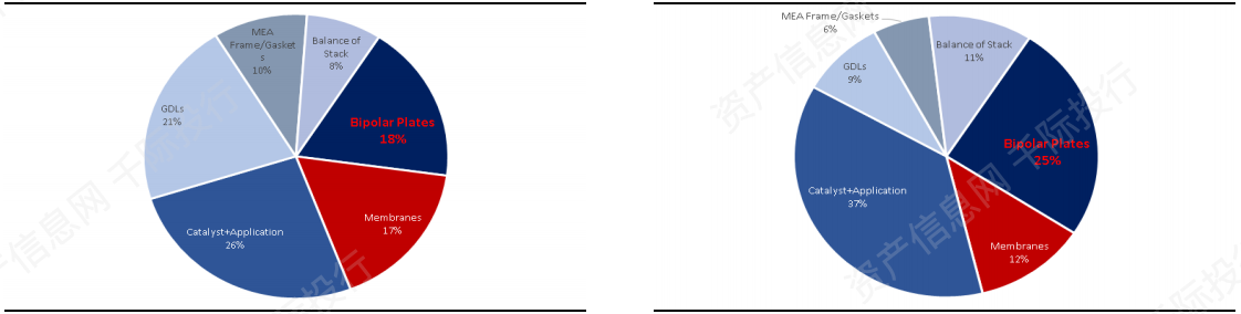 中游氢燃料电池涉及质子交换膜、扩散材料、催化剂等多种零部件和关键材料。