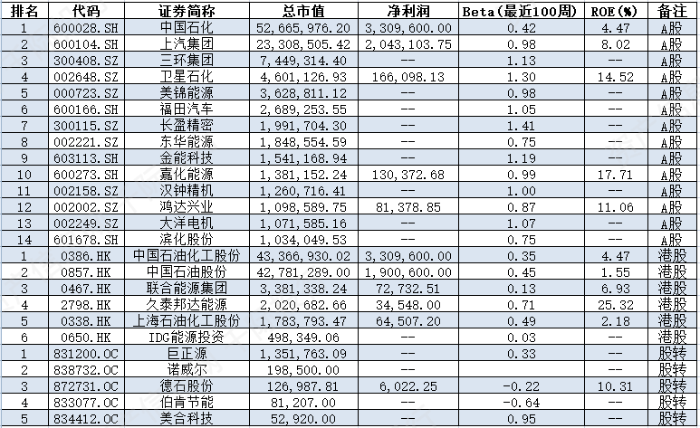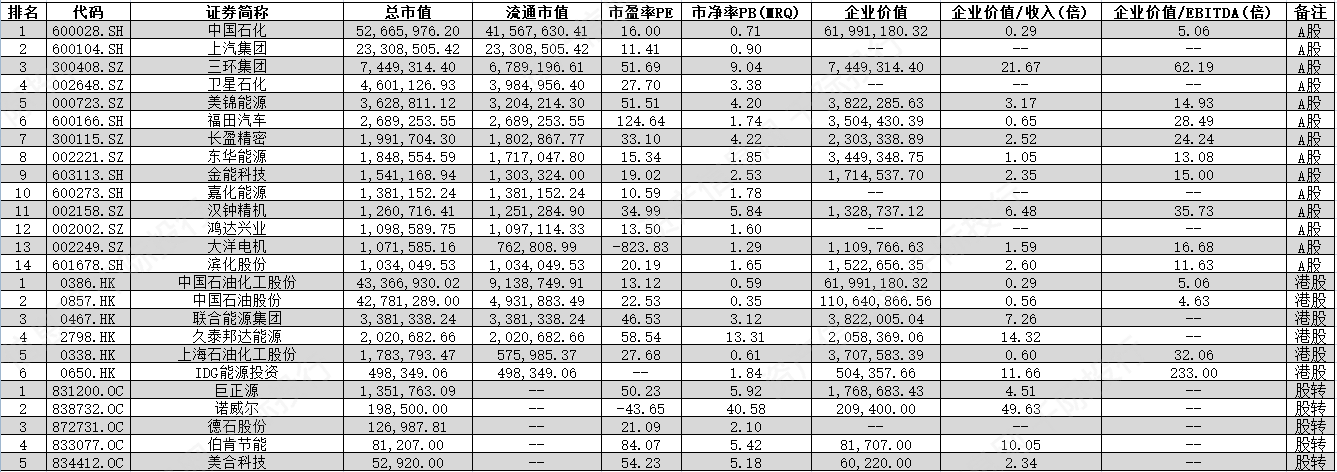 (1) 中国石化[600028.SH]是一家上中下游一体化、石油石化主业突出、拥有比较完备销售网络、境内外上市的股份制企业。公司是中国最大的一体化能源化工公司之一,主要从事石油与天然气勘探开发、管道运输、销售;石油炼制、石油化工、煤化工、化纤及其它化工生产与产品销售、储运;石油、天然气、石油产品、石油化工及其它化工产品和其它商品、技术的进出口、代理进出口业务;技术、信息的研究、开发、应用。中国石化是中国大型油气生产商;炼油能力排名中国第一位。在中国十大氢能企业中中国石化成于1998年的北京,是一家超大型的石油石化企业,自创办后品牌在多个体系上不断的完善,氢能产业方面的业务主要包含氢装置产氢、炼油重整副产氢等等。