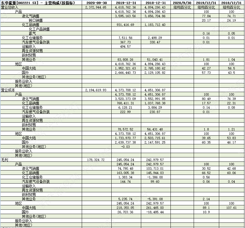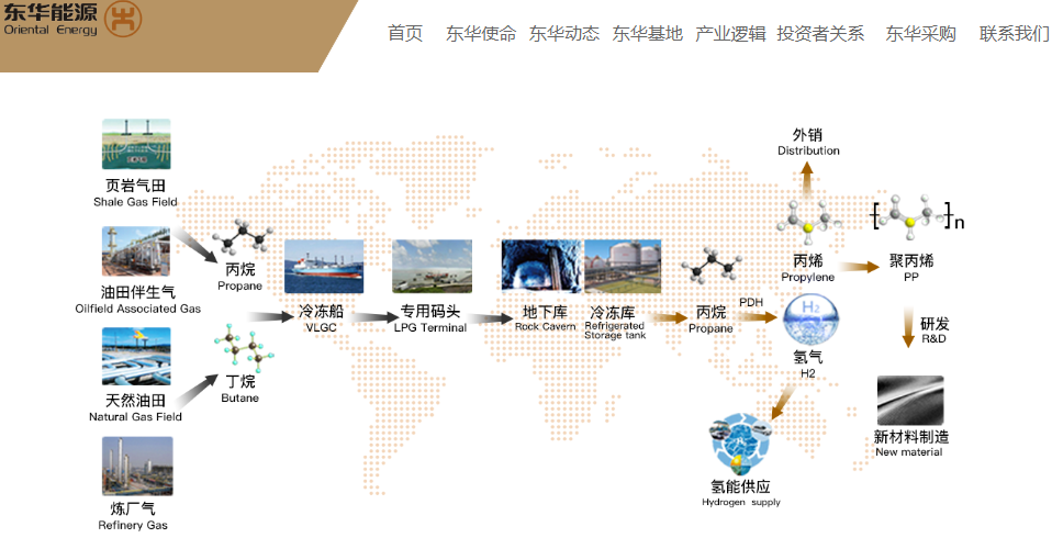 (3) 东华能源[002221.SZ]自成立以来一直专注于烷烃资源的进口、销售和深加工,公司致力于将国际优质烷烃资源与中国经济增长需求相结合,大力发展清洁能源、新材料产业,打造国内最大的烷烃资源综合运营商,现已发展成为全球一流的LPG综合运营商,业务范围涵盖烷烃资源国际国内贸易、化工仓储,终端零售及基础石化等四大板块。公司在新加坡设有国际贸易公司,专门负责国际LPG资源的锁定和采购;在张家港、太仓、宁波拥有三大生产储运基地,从事LPG的接卸、加工、储运以及甲醇,甲苯等化工品的仓储;在江苏,上海、浙江、安徽等省市拥有众多子公司,经营汽车改装、加气站和钢瓶零售等终端业务。