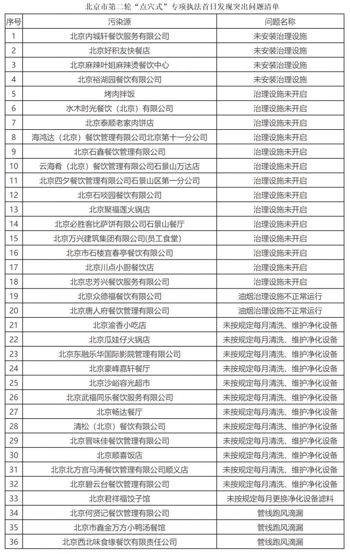 据北京市生态环境局介绍,该局于4月19日-4月23日,选取朝阳、海淀、石景山、房山、昌平、顺义、大兴、通州8个区排名靠后的8个街道(乡镇),组织开展餐饮、加油站等不同主题的检查。行动首日聚焦餐饮行业,共检查各类企业和点位164家,其中餐饮企业133家,有49家餐饮企业存在环境问题。其中,未安装治理设施的4家,油烟治理设施未开启的14家,存在管线跑冒滴漏、滤料更换和设备清洗不及时等设施不正常运行问题的18家,监测平台不规范的13家。此外,还发现扬尘、露天烧烤、汽修行业危废管理问题12个。