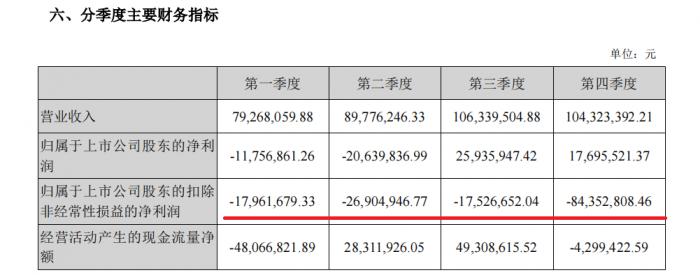 其“扣非”净利润表现更惨,2020年一季度到四季度的数据分别为-0.18亿元、-0.27亿元、-018亿元和-0.84亿元,这直接导致该公司2020年“扣非”净利润为-1.47亿元。