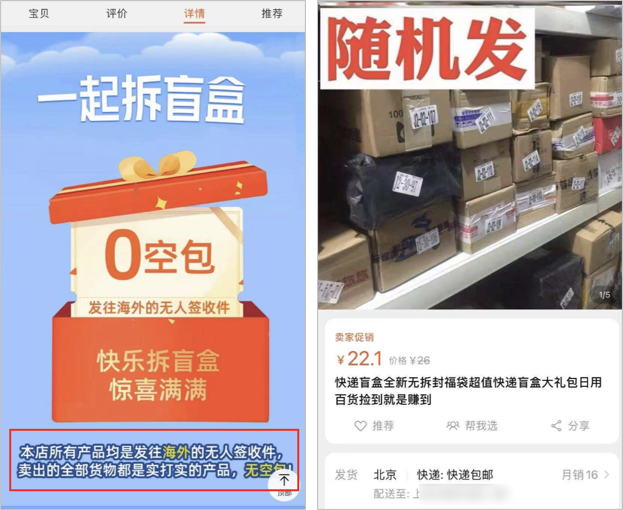 于是,我赶快去扒了一扒所谓的「快递盲盒」,发现里面的“猫腻”还真不少……