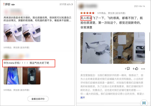 而在快递盲盒的商品评价里,也不乏说自己抽中手机、无人机等东西的: