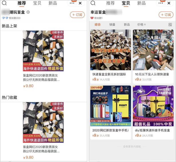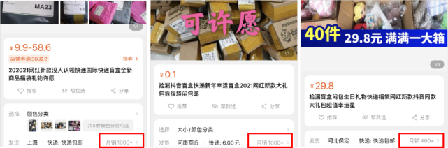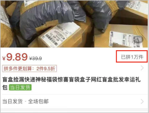 也就是说,只要用快递盲盒的噱头给这些劣质商品包装一下,不仅售价立马翻了一倍,还不愁销量。