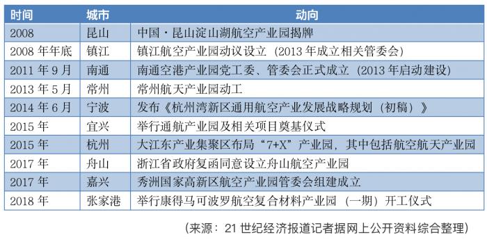 21世纪经济报道记者梳理发现,从2008—2018年十年间,长三角迎来航空产业园建设热潮。