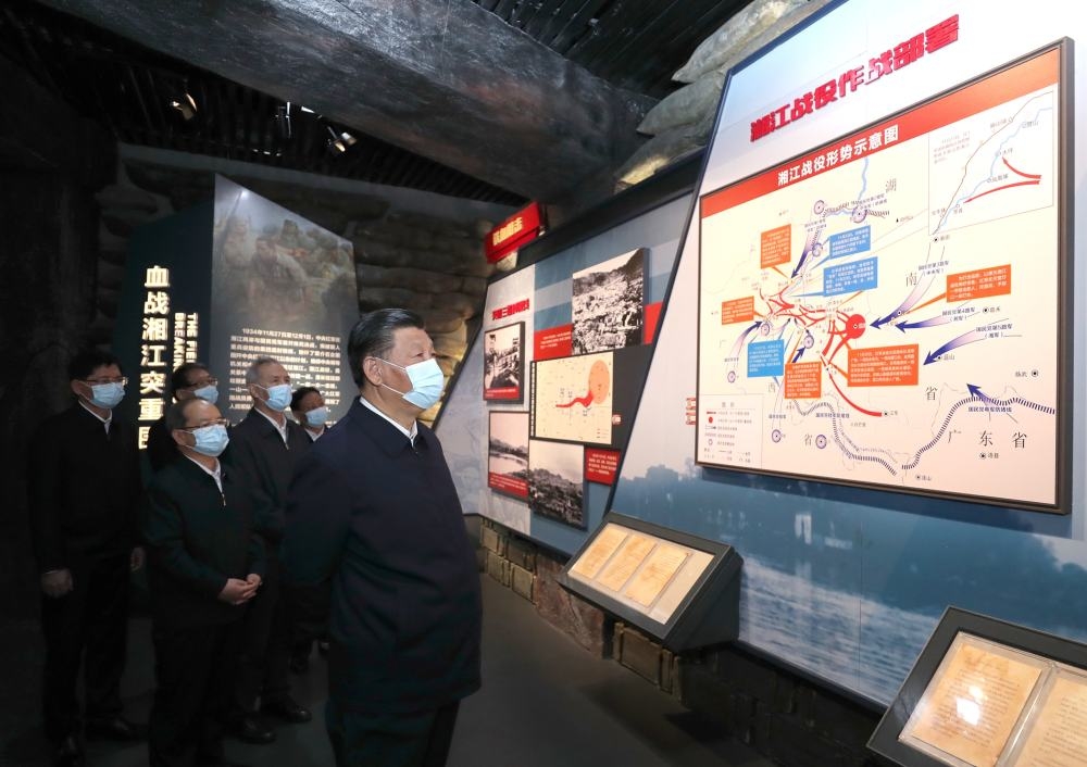 ↑2020年9月16日,习近平在湖南郴州市汝城县文明瑶族乡沙洲瑶族村“半条被子的温暖”专题陈列馆,了解当地加强基层党的建设、开展红色旅游和红色教育情况。