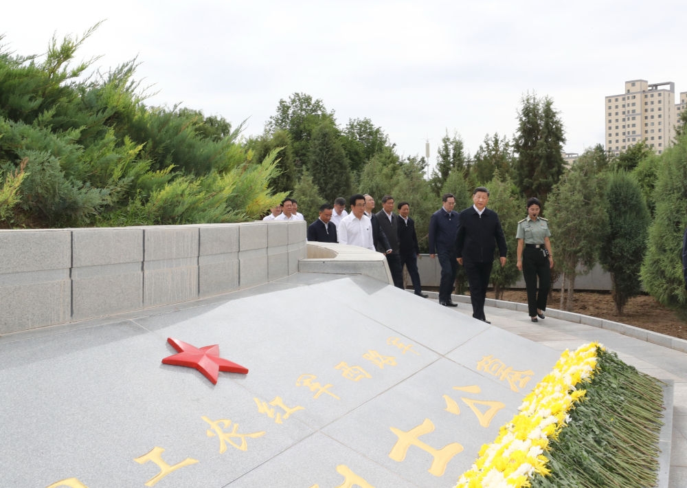 ↑2019年8月20日,习近平在甘肃张掖市高台县,瞻仰中国工农红军西路军纪念碑和阵亡烈士公墓。