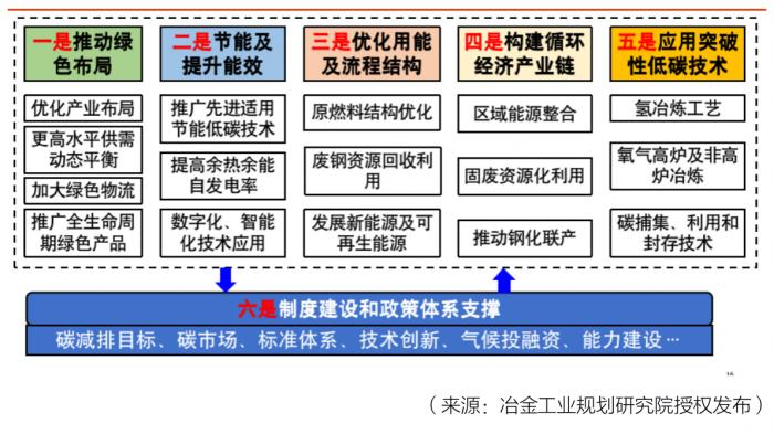拉宽视野,整体就行业来说,李新创提出,我国钢铁行业碳达峰、碳减排路径应主要包括六个方面: