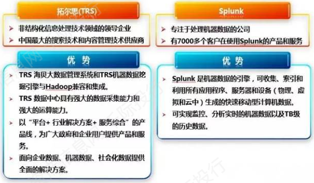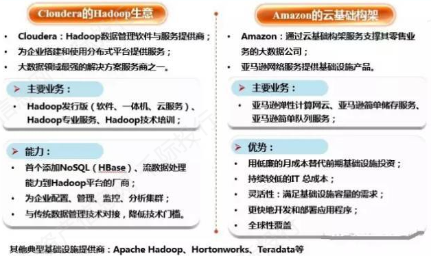 (2) 提供整体解决方案,IT厂商为主。IBM提供软硬一体的大数据解决方案;华为基于IT基础设施领域在存储和计算的优势,提供整体大数据解决方案。