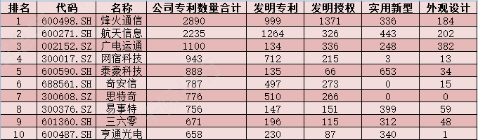 对大数据行业的各个专利申请人的专利数量进行统计,排名前十的大数据行业公司依次为:烽火通信、航天信息、广电运通、网宿科技、泰豪科技、奇安信、思特奇、易事特、三六零、亨通光电等。