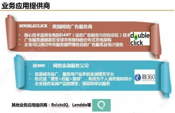(2) 咨询服务提供者,提供技术服务支持、技术(方法、商业等)咨询,或者为企业提供类似数据科学家的咨询服务;定位在某一具体行业,通过大量数据支持,对数据进行挖掘分析后预测相关主体的行为,以开展业务;利用数据挖掘技术帮助客户开拓精准营销或者新业务,有时企业收入来自于客户增值部分的分成。