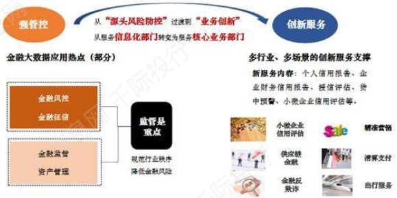金融大数据是隶属于金融科技的关键技术,它服务于金融机构的核心业务环节,解答诸如贷不贷款、贷款多少、风险如何等关键问题。2017年以来,随着金融监管日趋严格,基于数据规范行业秩序,降低金融风险,成为金融大数据的主流应用场景。