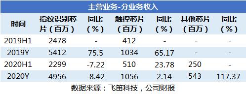 主营指纹识别芯片负增长,业绩大幅下滑