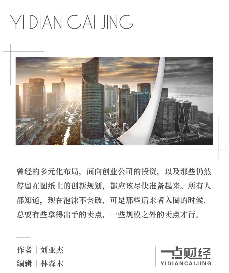 物业公司追求规模增长当然没有错,可是总不能只有这一门心思。曾经的多元化布局,面向创业公司的投资,以及那些仍然停留在图纸上的创新规划,都应该尽快准备起来。所有人都知道,现在泡沫不会破,可是那些后来者入圈的时候,总要有些拿得出手的卖点,一些规模之外的卖点才行。