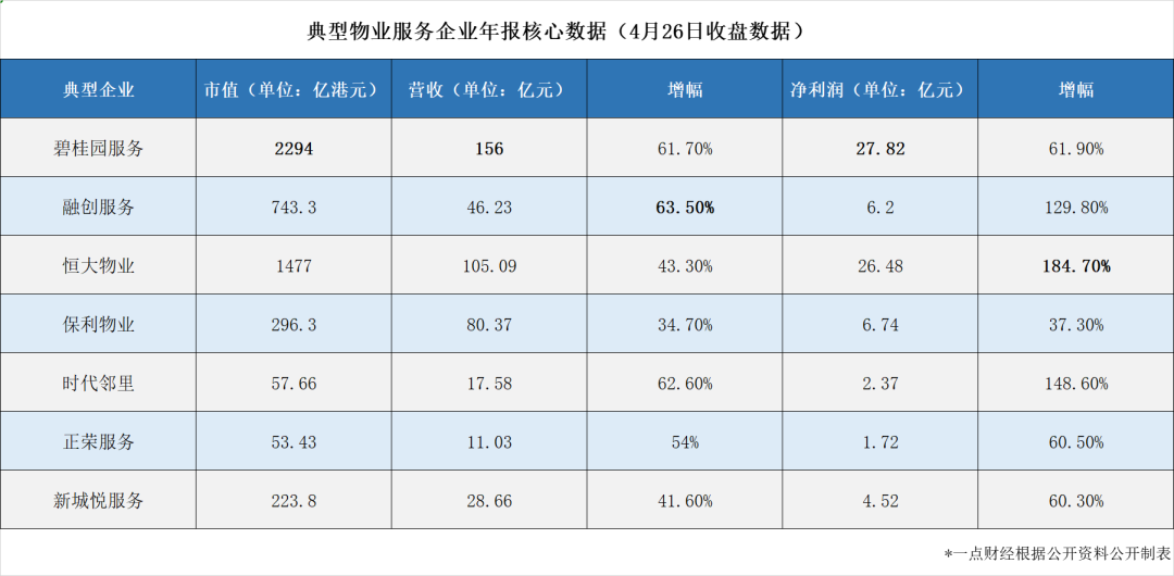 眼下,大如碧桂园服务(06098.HK)、融创服务(01516.HK)、恒大物业(06666.HK),小如时代邻里(09928.HK)、荣万家(02146.HK)、正荣服务(06958.HK),渐次发布年报。其中多数都是首次公布业绩,超高的增速在地产板块已是多年未见。
