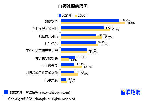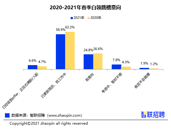 2021年春季白领跳槽指数同比下降,跳槽成功率上升