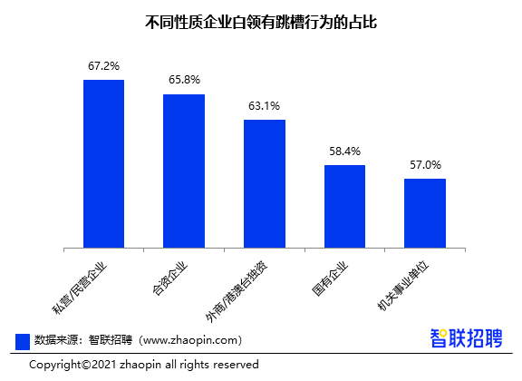 私营与合资企业白领流动性增强,机关单位人才跳槽行动仍为最低