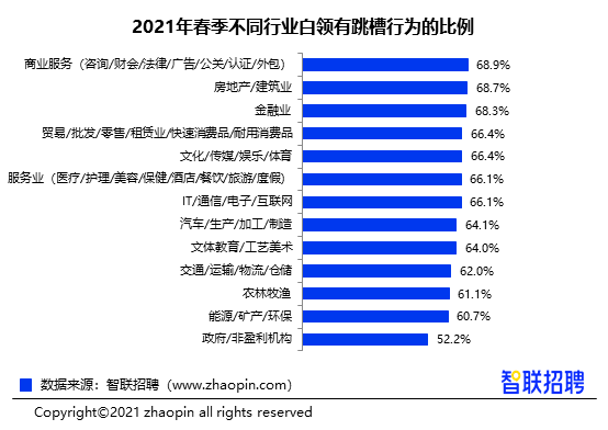 商业服务、建筑、金融行业跳槽占比高