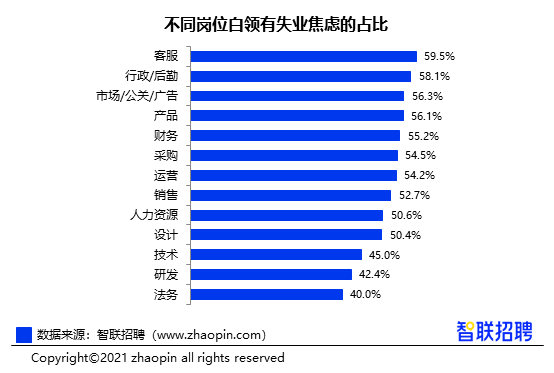 三、白领失业焦虑有所上升,客服、行政担忧最深