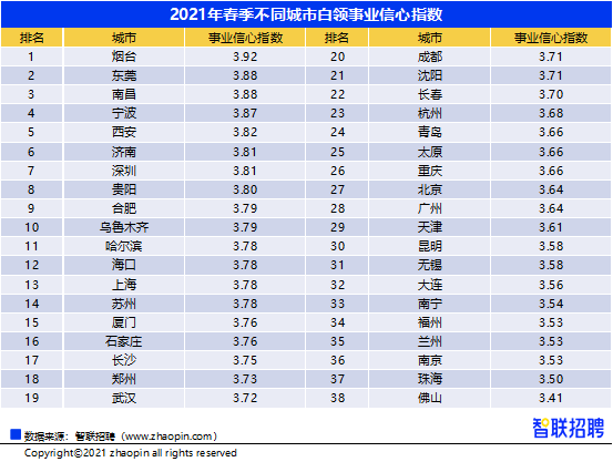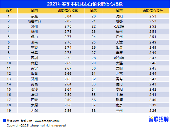 东莞白领求职信心最高,北京上海位列榜单后十