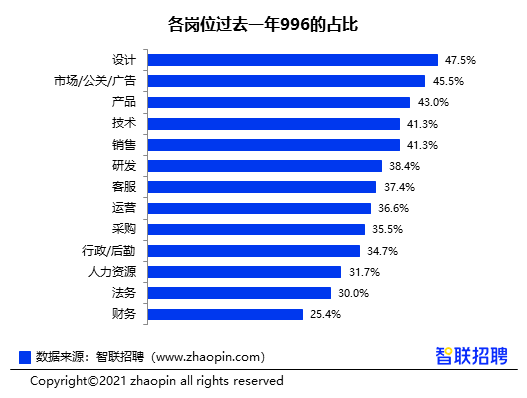 近4成白领经历996,设计与市场公关为重灾区