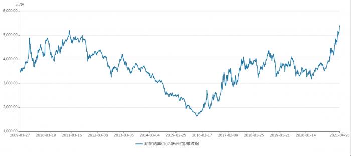 今年以来,整体而言,国内螺纹钢的价格在不断走高。4月27日,上海期货交易所螺纹钢结算价高达5396元/吨,为2009年以来的最高值。