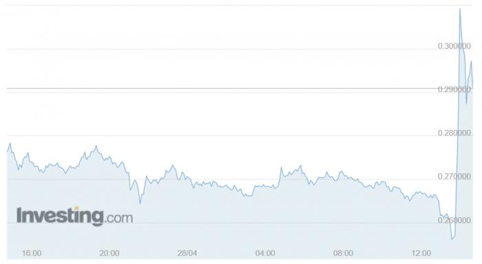 推文发出后,狗狗币短线拉升,涨幅扩大至10倍,最高达到 0.3119 美元,而 24 小时内低点仅有 0.2562 美元。