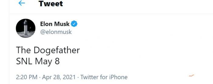4月28日下午,“狗狗币大涨”登上微博热搜,消息面上,特斯拉CEO埃隆·马斯克再次在社交媒体发布与狗狗币相关的推文,并提到他将于5月8日主持的《周六夜现场》SNL节目。