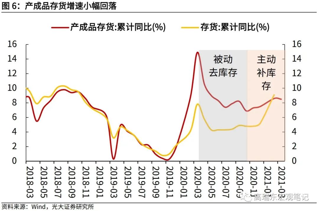 产成品存货增速小幅回落,库存周转加快。2021年3月末,规模以上工业企业产成品存货同比增长8.5%,比2月末回落0.1个百分点,产成品存货周转天数为18.3天,同比减少4.7天,比2月末减少1.4天。在市场需求回暖、销售较快增长带动下,企业库存周转加快,企业产成品增速有所回落。2020年三季度以来,随着工业企业利润率升高和成本的降低,企业经营状态得到改善,国内外需求持续推动企业供应能力持续提升,库存周期从“被动去库存”进入“主动补库存”的阶段,企业有动力提高资本开支以扩大产能。