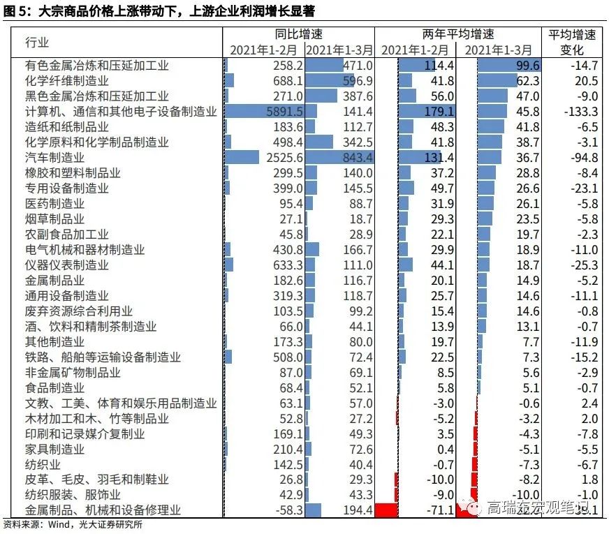 上游企业利润普遍增长,成为拉动工业利润作用最强的板块。在大宗商品价格上涨和需求持续回暖等因素带动下,1-3月,原材料行业利润增速比1—2月份提高88.4个百分点,拉动一季度规模以上工业利润增长51.5个百分点。