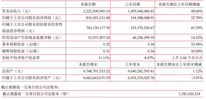 4月28日晚,汤臣倍健(300146.SZ)发布2021年一季度业绩。报告显示,今年1-3月公司实现营收22.23亿元,同比增长48.66%;归属上市公司股东的净利润8.16亿元,同比增长52.70%。