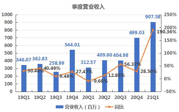 无论是2020年报还是2021一季报,公司业绩均表现十分亮眼,公司一季度甚至维持三位数增长。