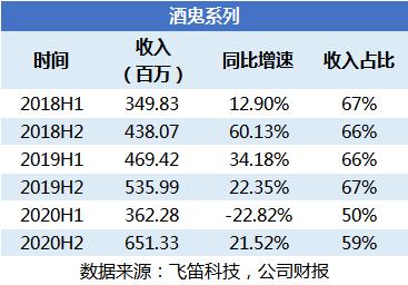 2020年酒鬼酒营收增速的变化,具体可以反映在公司的分业务收入上。由于A股上市公司只公布半年度和年度的分业务数据,因此我们无法对公司季度的分业务数据进行解读。但为了更好地反映公司的收入变化情况,我们将分业务数据全部折算成半年度数据。