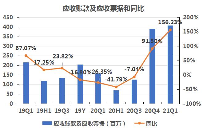 2021年一季度,公司实现营收9.08亿元,同比增长190.36%,净利润为2.68亿元,同比增长178.85%,扣非净利润2.67亿元,同比增长181.32%,无论是2020年年报还是2021年一季报,公司业绩均表现十分亮眼,公司一季度甚至维持三位数增长。