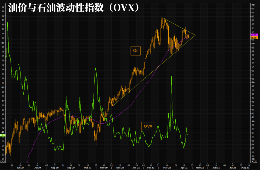 原油波动指数(OVX)在过去几个交易日中有所下降,但仍高于近期低点。