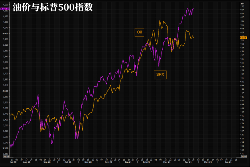 油价与标普500指数的走势相反。