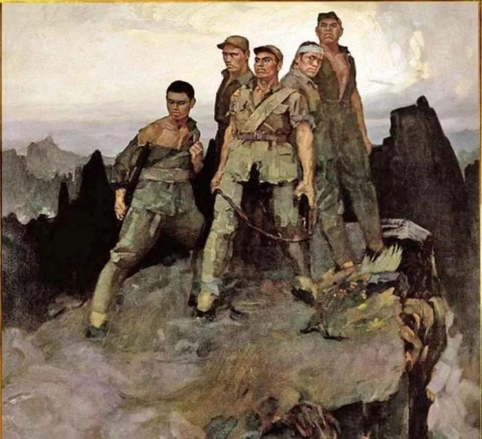 在喜迎中国共产党成立100周年的日子里,我们重温油画《狼牙山五庄士》,要牢记习近平总书记在文艺座谈会上的讲话精神,坚持以人民为中心的创作导向,努力创作出更多无愧于时代、无愧于人民的优秀作品。