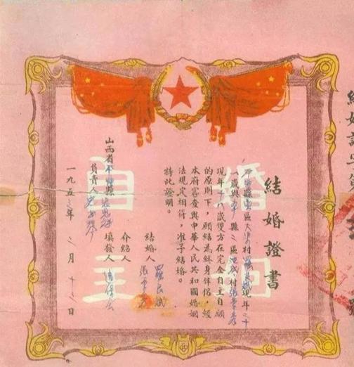 20世纪50年代初的结婚证