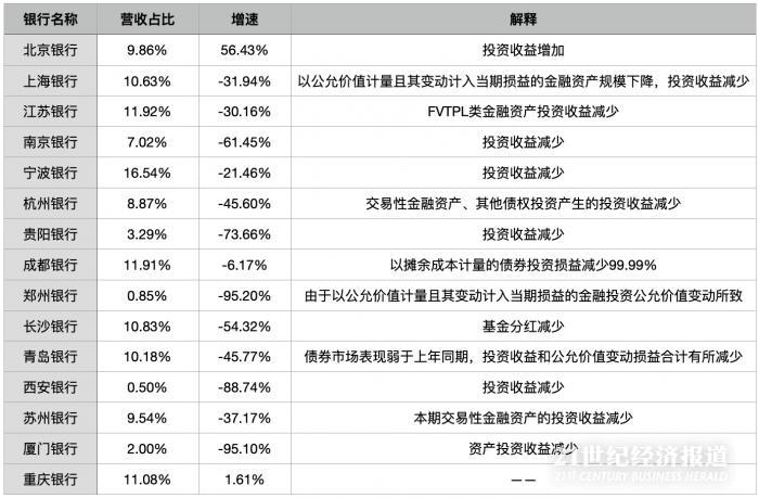 上市城商行投资能力哪家强:6家收益增速下滑超50%,北京银行逆势涨超50%