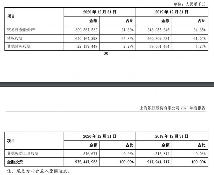 从结构来看,北京银行、上海银行金融投资资产的构成也相当,债权投资占比分别为65.83%、66.38%;交易性金融资产占比分别为30.41%、31.83%。