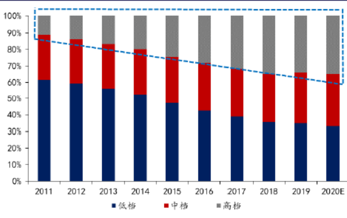 相比高大上的消费电子,下里巴人的啤酒行业更值得细品。20 世纪80-90 年代啤酒行业跑马圈地,价格战压力下厂商以廉价酒花浸膏代替啤酒花降低成本,用寡淡如水的工业拉格啤酒抢占市场,低端产品消费量占比超过90%。