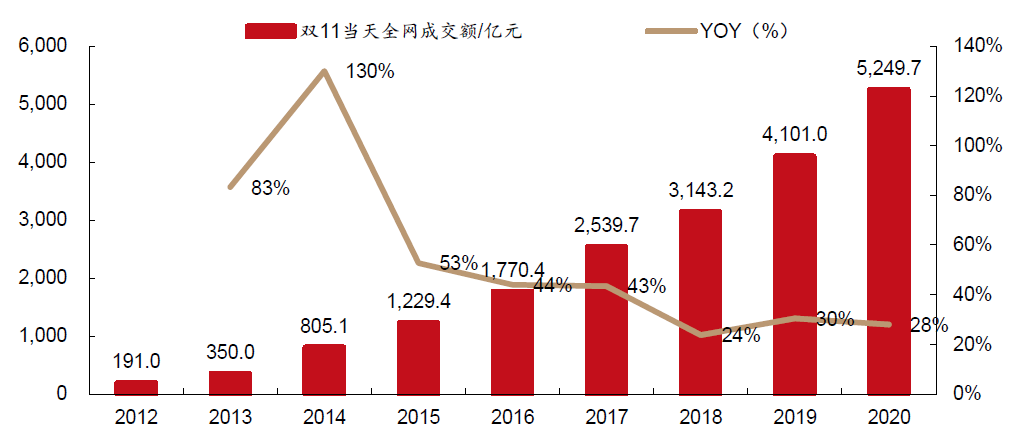 如今,5000万元已经变成了5000亿元,11年1万倍增长。双11已经成为各大电商一个也不能少的“法定”刷纪录日。