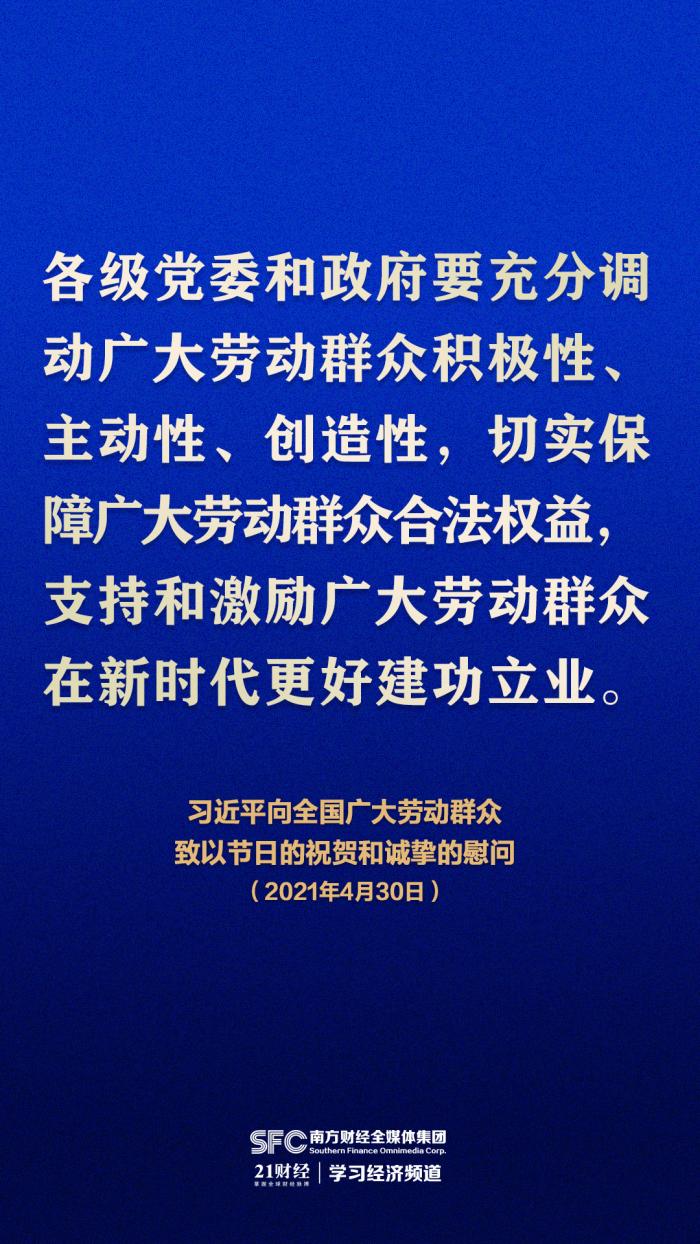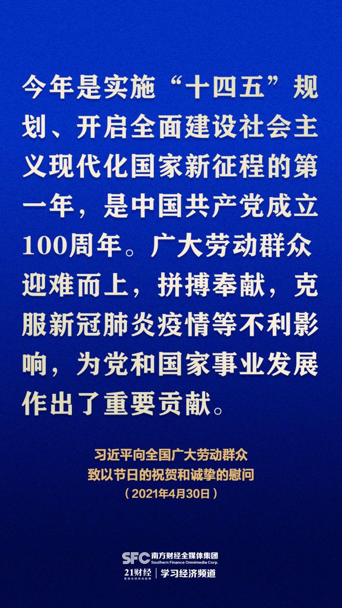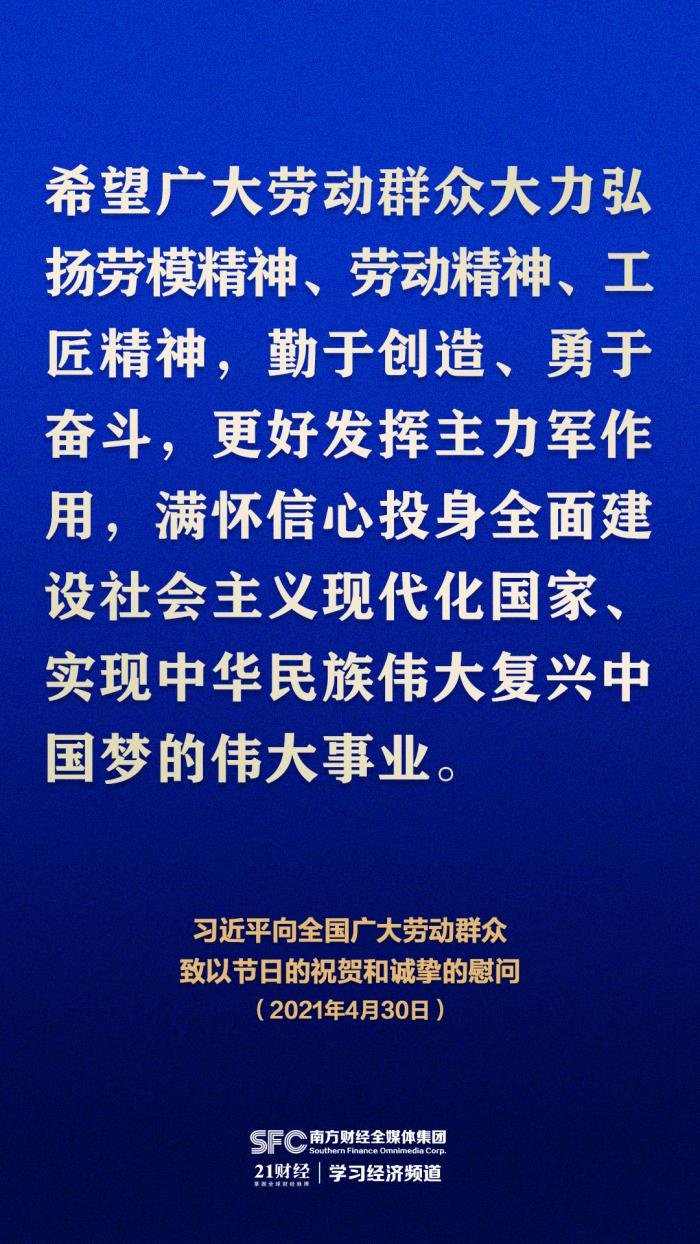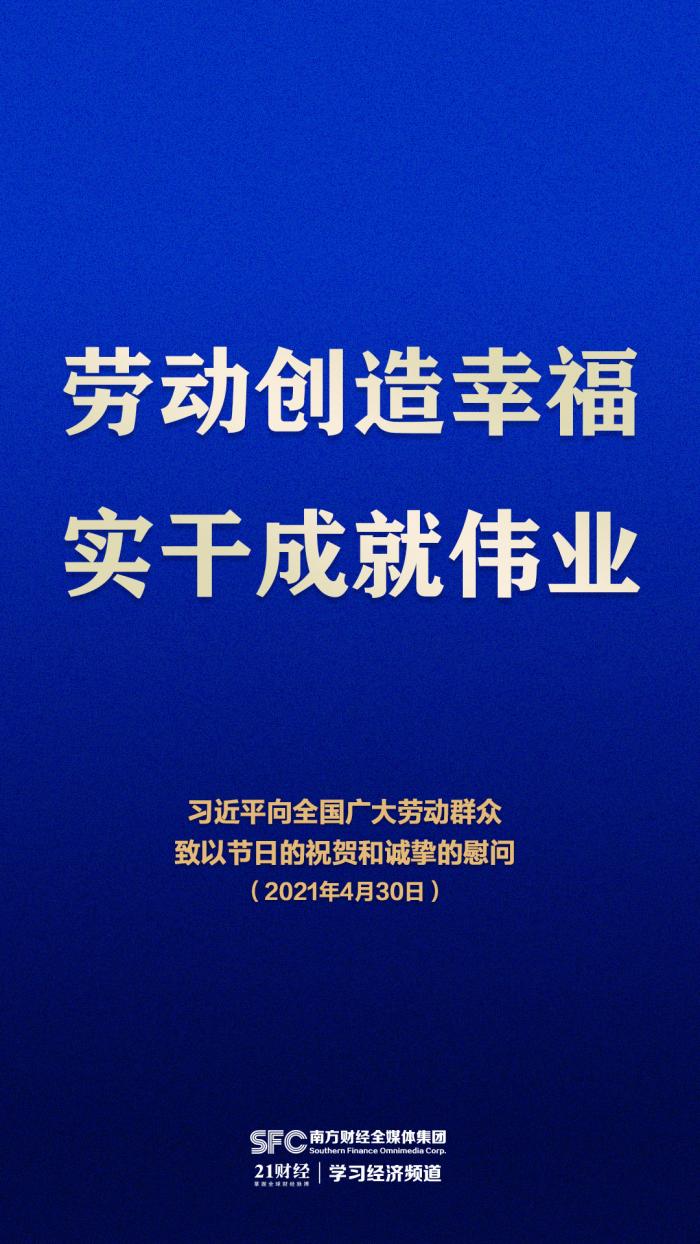 在“五一”国际劳动节到来之际,中共中央总书记、国家主席、中央军委主席习近平代表党中央,向全国广大劳动群众致以节日的祝贺和诚挚的慰问。