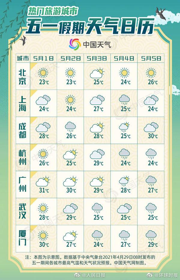 五一各地阴晴冷暖+热门旅游城市天气日历,附赠五一全国赏花地图!