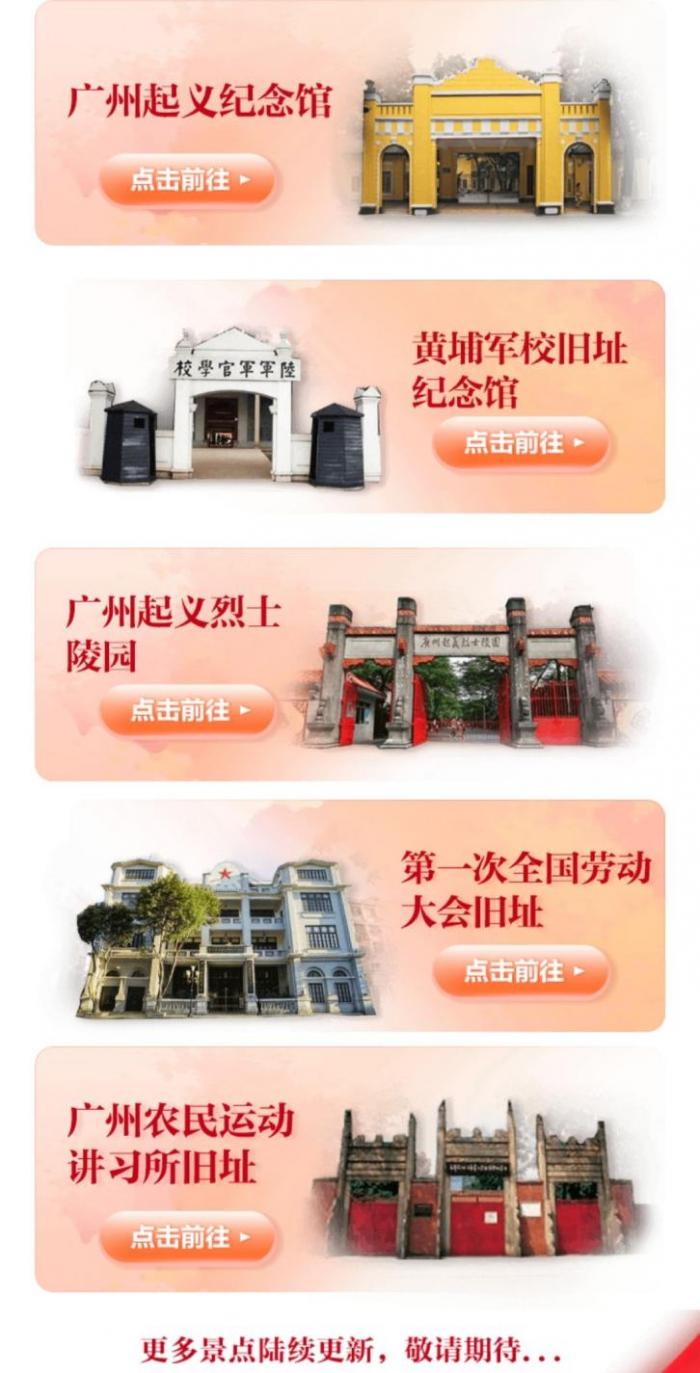 此外,广州红色VR全景展将持续更新,开放更多红色景点,敬请期待!