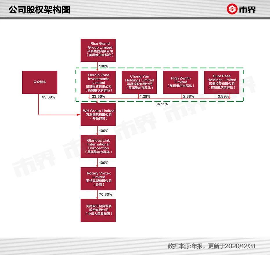 截至2020年年末,双汇发展的间接控股股东为万洲国际,而这两家上市公司的实际控制人,仍为兴泰集团。
