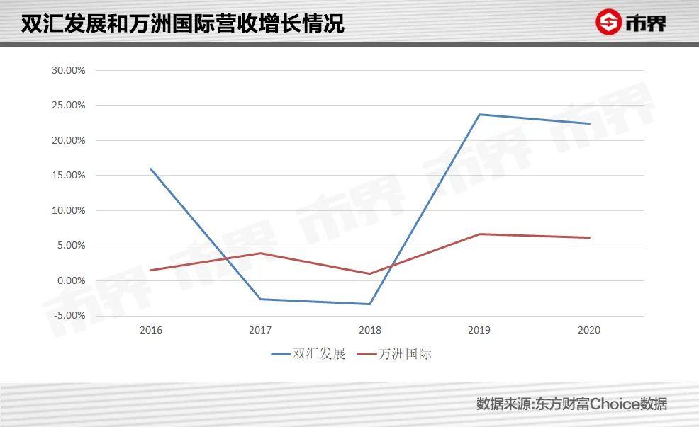 双汇发展与万洲国际的规模不断扩大,2020年,万洲国际营收255.89亿美元,双汇发展营收738.63亿元。但是,近几年,公司的营收增长都不稳定,且增长较快的年份常常伴有并购等资本运作。