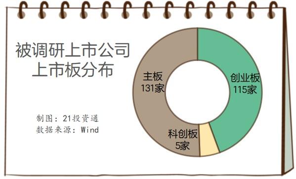 其中,主板和创业板分别达到131家、115家,另外还有5家科创板公司获得调研。