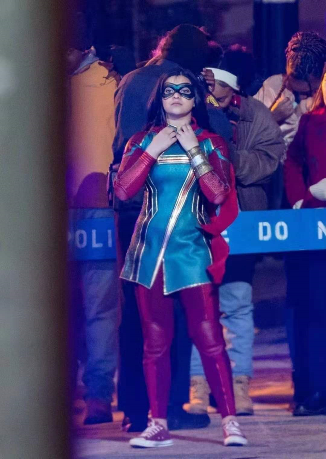 漫威新剧《惊奇女士》曝光新片场照,伊曼·韦拉尼穿制服亮相。该剧即将在十二月份于Disney+播出。