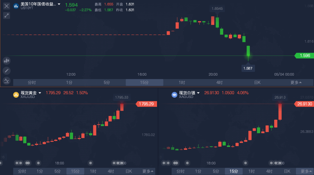 10年期美债收益率下破1.6%,现货白银大涨4%